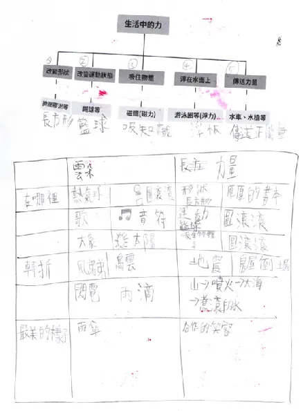 我們引導孩子聯想到自然課學過的「力量」。